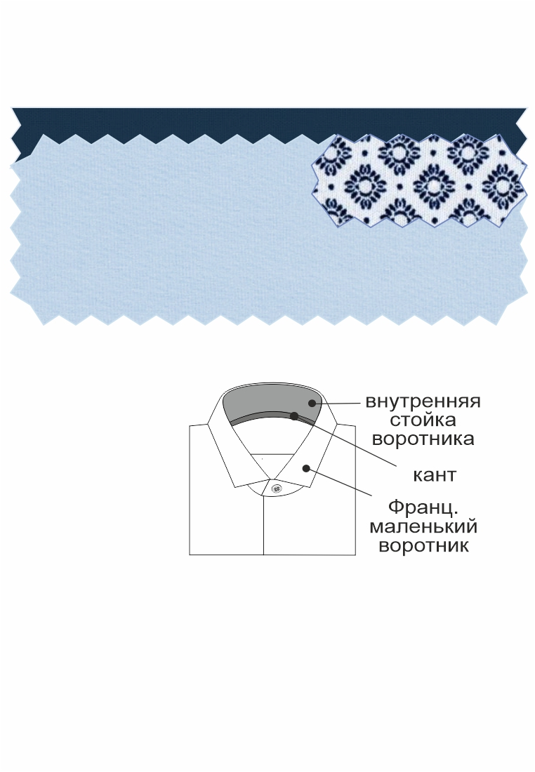 - Сорочки: внутренняя стойка воротника из ткани компаньона по косой
